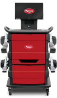 • Die Konsole mit Fahrgestell enthält den Computer, den Drucker und den Bildschirm.
