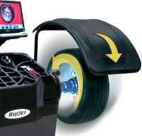 • Automatischer Start, wenn der Radschutz abgesenkt wird – Die Maschine stoppt das Rad automatisch in der äusseren Unwuchtposition und dreht auf Knopfdruck automatisch in die innere Unwuchtposition