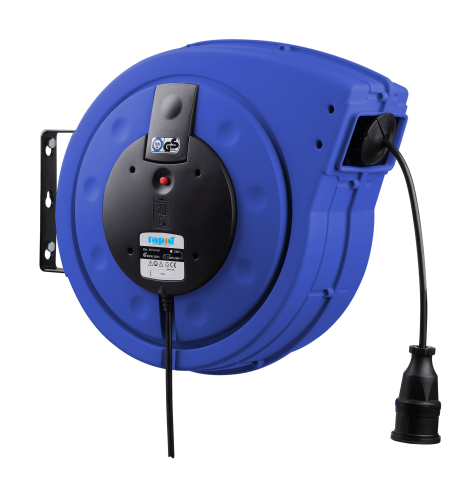 Automatischer 230 V~ Kabelaufroller mit 35 m Kabel, zur Wand- oder Deckenmontage.