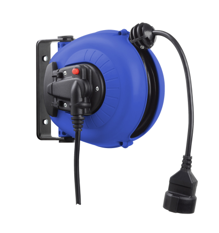 Automatischer 230 V~ Kabelaufroller mit 5+1 m Kabel, zur Wand- oder Deckenmontage.