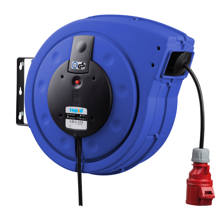 Automatischer 400 V~ Kabelaufroller mit 30 m Kabel, zur Wand- oder Deckenmontage.