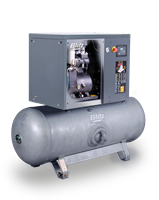 Kompakt-Schraubenkompressor auf liegendem Druckbehälter, Keilriemenantrieb, 8-13 bar, 0,4-2,01 m3/min Volumenstrom, 270-500l