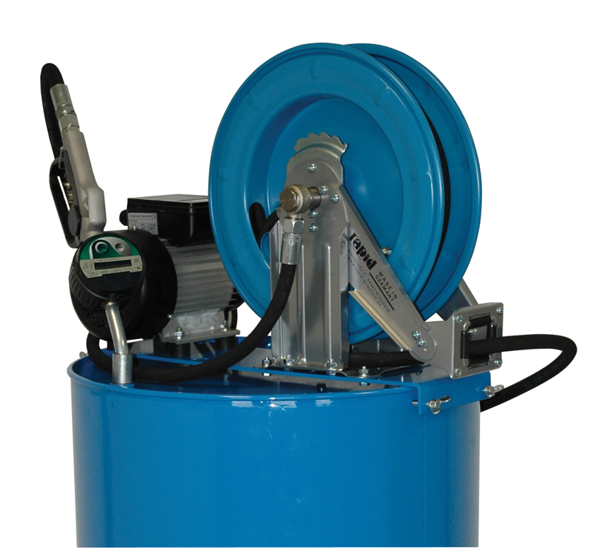 Stationäre Ausführung zur Montage auf 200 Ltr. Ölfässer. Ermöglicht einen Versorgungsradius bis zu 10 m in einer kompakten und praktischen Ausführung.
