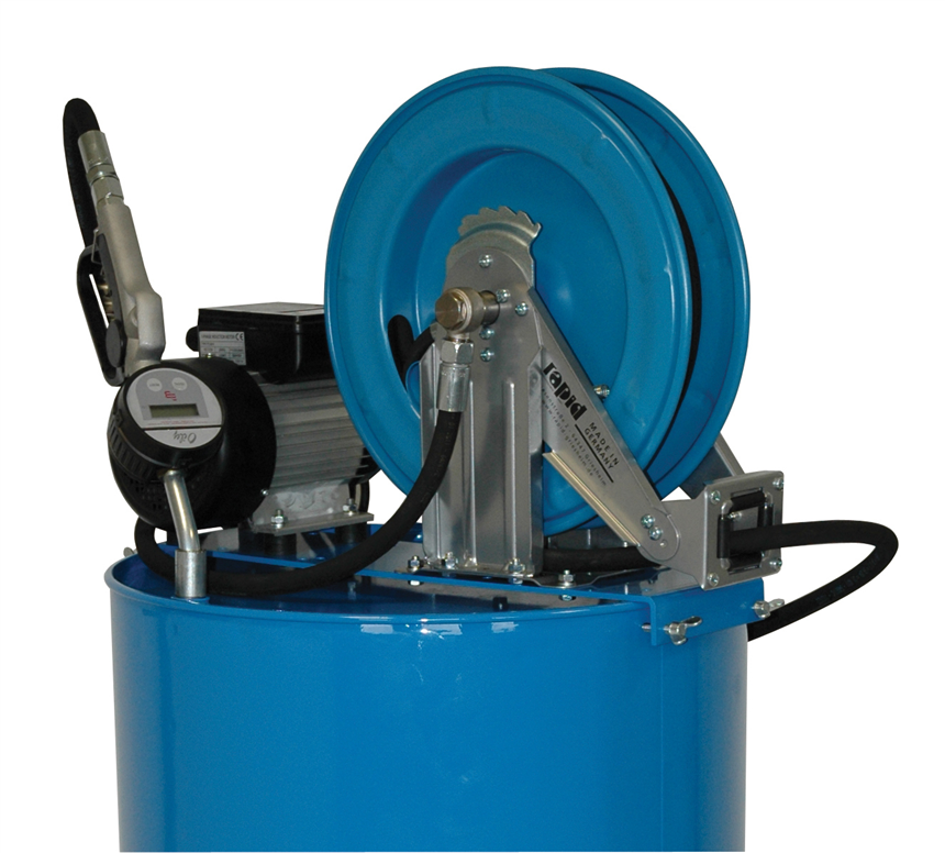 Stationäre Ausführung zur Montage auf 200 Ltr. Ölfässer. Ermöglicht einen Versorgungsradius bis zu 10 m in einer kompakten und praktischen Ausführung.
