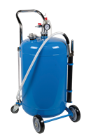 Mobiler Ölspender mit einem Fassungsvermögen von bis zu 80 Liter für die netzunabhängige Ölabgabe. Die Befüllung erfolgt aus Fässern mit 50-, 60- oder 200 Litern Inhalt mittels Schwerkraft und mit Hilfe eines Einfülltrichters oder auch aus Tanks mittels einer Umfüllpumpe.