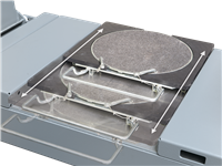 - Wird kein Drehteller verwendet, lassen sich die Aussparungen vollständig verschließen. Die Füllstücke sind mit Kunststoffanschlägen versehen, so wird Korrosion vermieden und die Geräuschentwicklung eingedämmt.