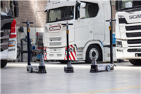Robuste Konstruktion für Nutzfahrzeuge, dennoch kompakt und leicht transportierbar. Kabellose Manövrierbarkeit dank zweistufigem Lithium-Akku, inklusive Fernbedienung und Not-Aus-Funktion für maximale Sicherheit. Reibungsloser, spurenfreier Betrieb bis zu 37 to mit hochwertigem Hydraulikzylinder und Polyurethan-Rädern.
