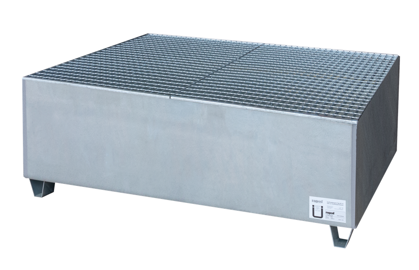 IBC-Auffangwanne aus Stahl mit Gitterrost und Füssen, verzinkt.
