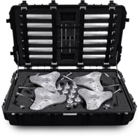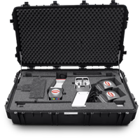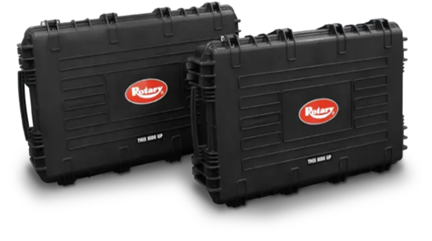 - Der Koffer verfügt über ein externes Stromkabel, um die Messköpfe und das Tablet direkt im Koffer aufladen zu können