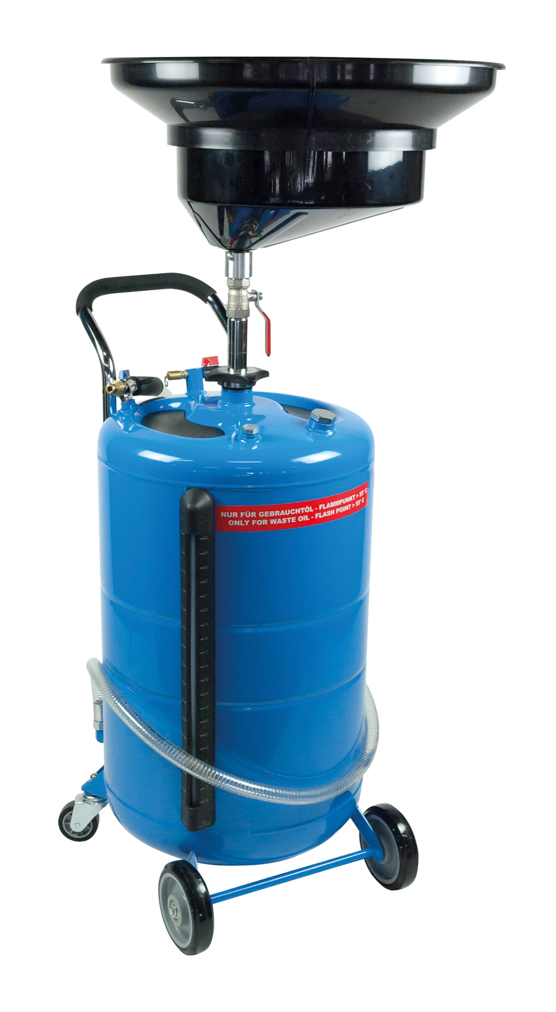 Mobiler Altölaufnehmer zum Auffangen von Altöl (bekannter Herkunft, Flammpunkt > 55° C) unter Hebebühnen. Entleerung mittels Druckluft, Behälterinhalt 120 Ltr.