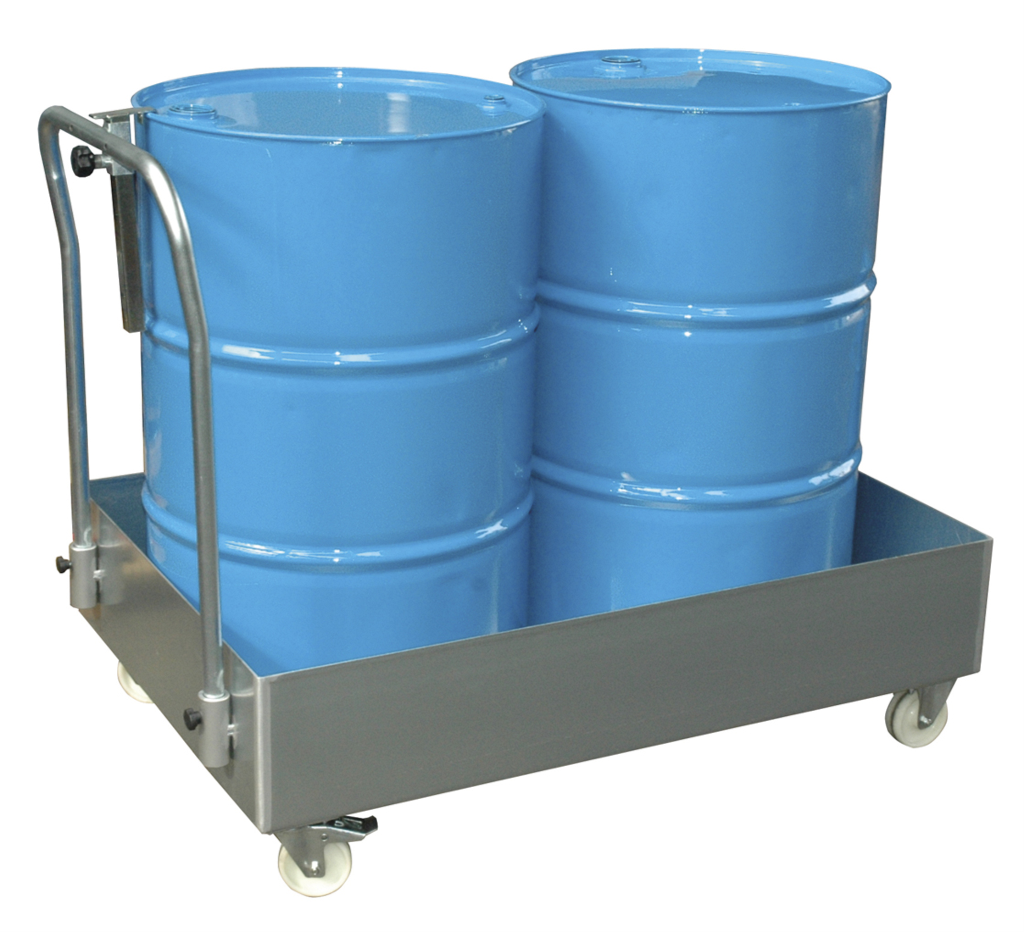 Speziell konzipiert für den innerbetrieblichen Transport von 200 Ltr.-Fässern. Leicht fahrbar durch 2 Lenkrollen und Schiebebügel mit Fassarretierung