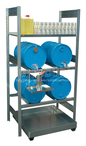 Für umweltgerechte Lagerung von Originalgebinden mit wassergefährdenden Flüssigkeiten wie Motorenöl, Getriebeöl, Hydrauliköl und ähnliche Flüssigkeiten