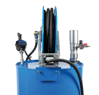 Kühlflüssigkeits-Abgabesets in mobiler und stationärer Ausführung. Mit pneumatischer oder elektrischer Pumpe, wählbar mit Schlauchaufroller.