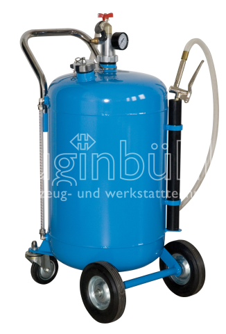 Mobiler Ölspender mit einem Fassungsvermögen von bis zu 80 Liter für die netzunabhängige Ölabgabe. Die Befüllung erfolgt aus Fässern mit 50-, 60- oder 200 Litern Inhalt mittels Schwerkraft und mit Hilfe eines Einfülltrichters oder auch aus Tanks mittels einer Umfüllpumpe.