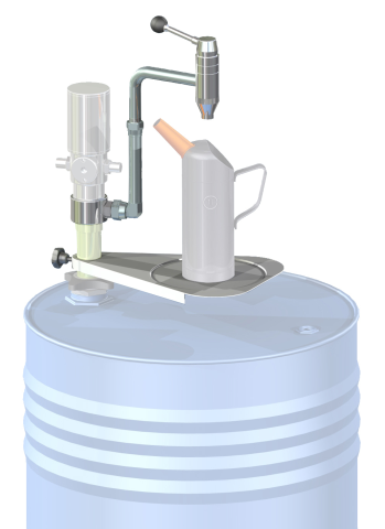 Abgabehahn zum Befüllen von Ölkannen, mit Kannenstellfläche zur direkten Montage an pneumatischen Ölpumpen