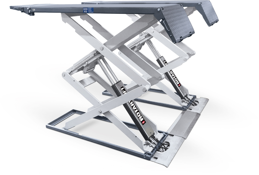 Doppelscheren-Hebebühne Rotary DS32 CAT-A, 3.2 to. Low-Profile Doppelscheren-Hebebühne speziell für den Service-Bereich. Die flexiblen Aufnahmeplattformen ermöglichen ein breites Aufnahmespektrum.