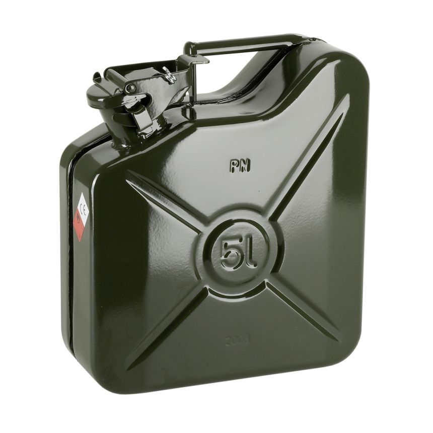 Robuster Metallkanister aus geschweisstem Stahlblech, oliv, für flüssige Kraftstoffe