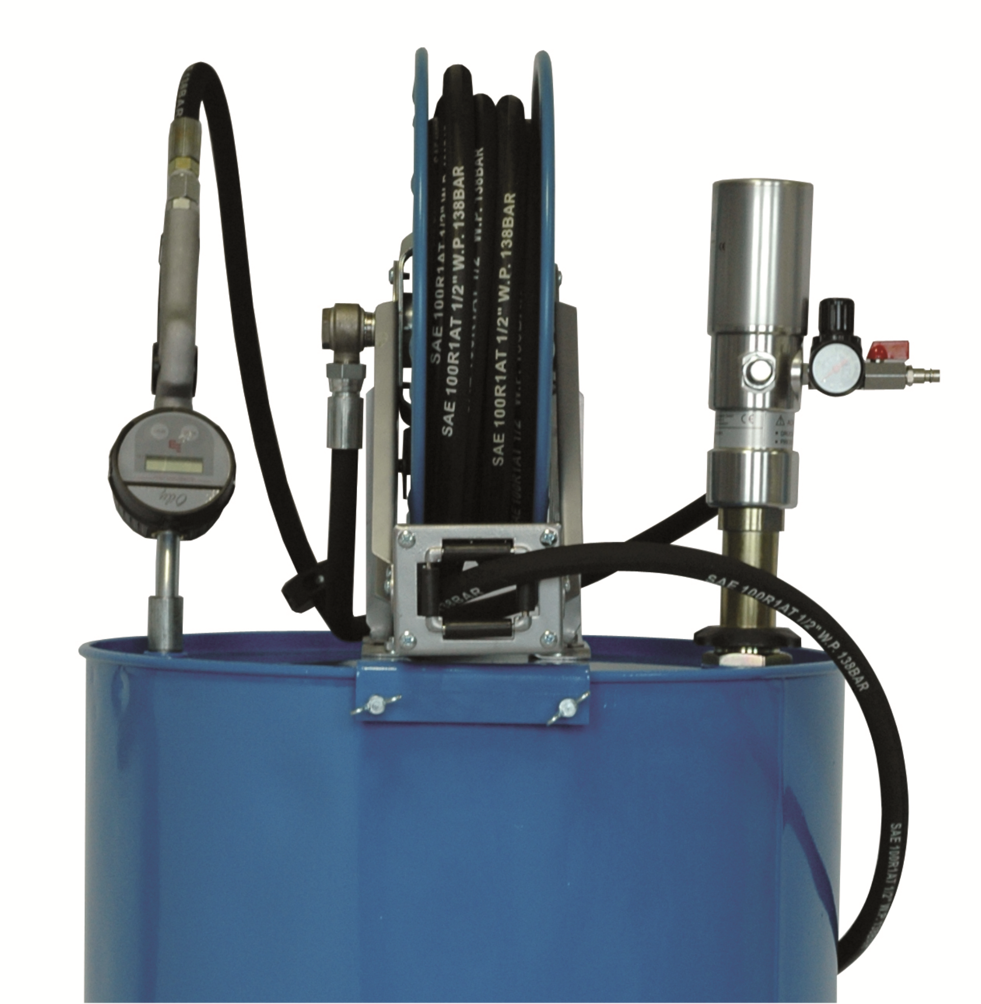 Zur Montage auf 200 Ltr. Ölfässer. Ermöglicht einen Versorgungsradius bis zu 10 m in einer kompakten und und praktischen Ausführung.