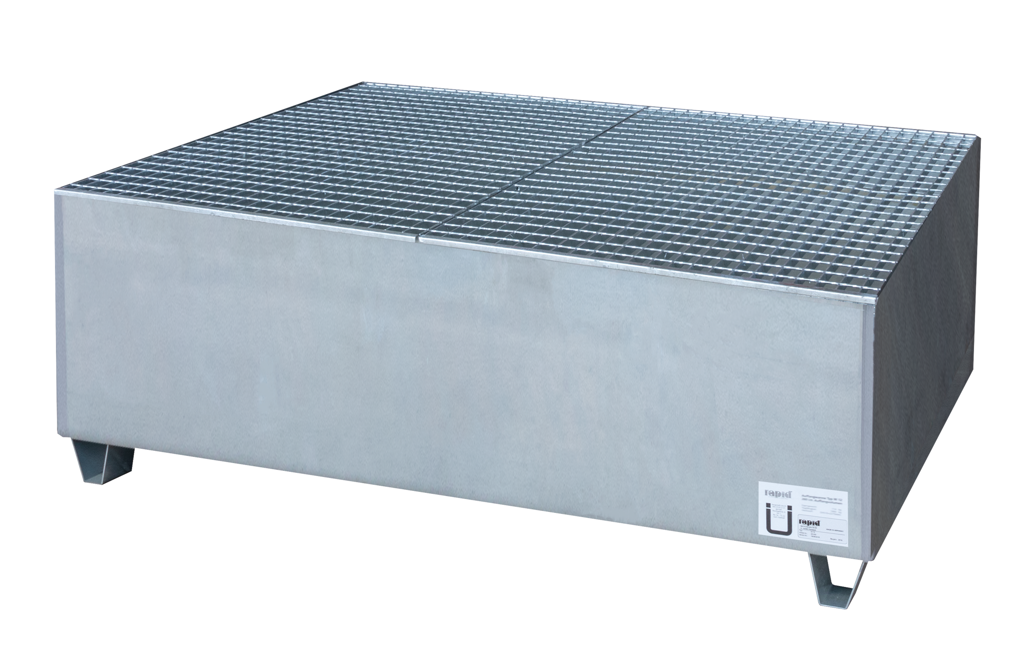 IBC-Auffangwanne aus Stahl mit Gitterrost und Füssen, verzinkt.