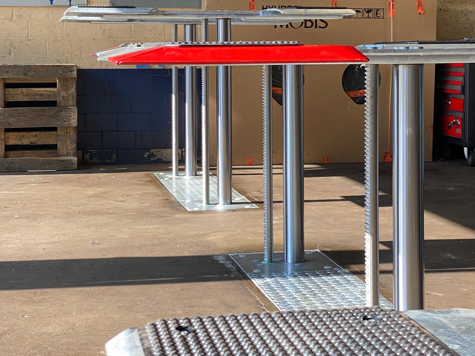 Zwei 2-Stempel-Hebebühnen 3,5 to mit Reparaturaufnahmen, wovon 1 x bodeneben.
