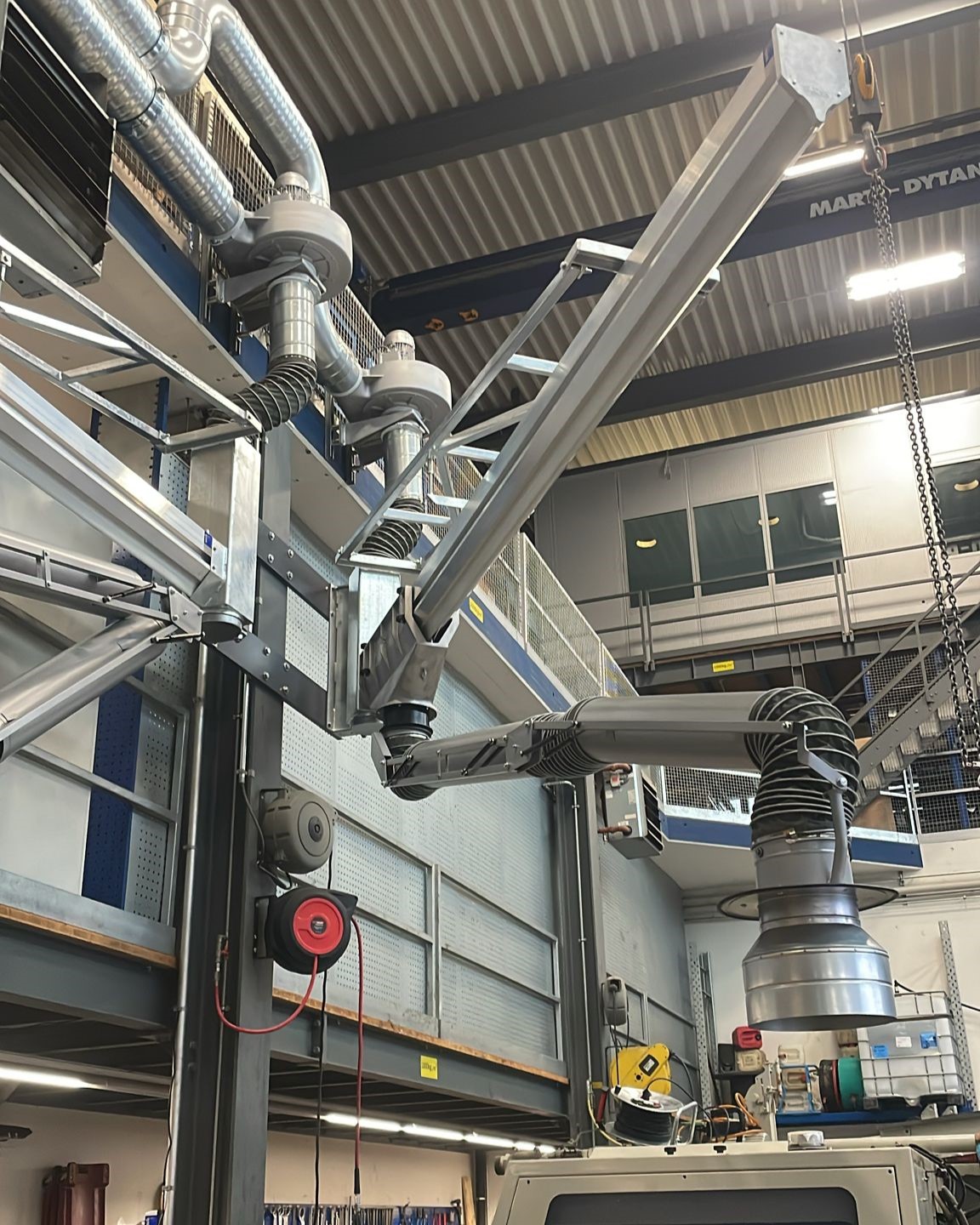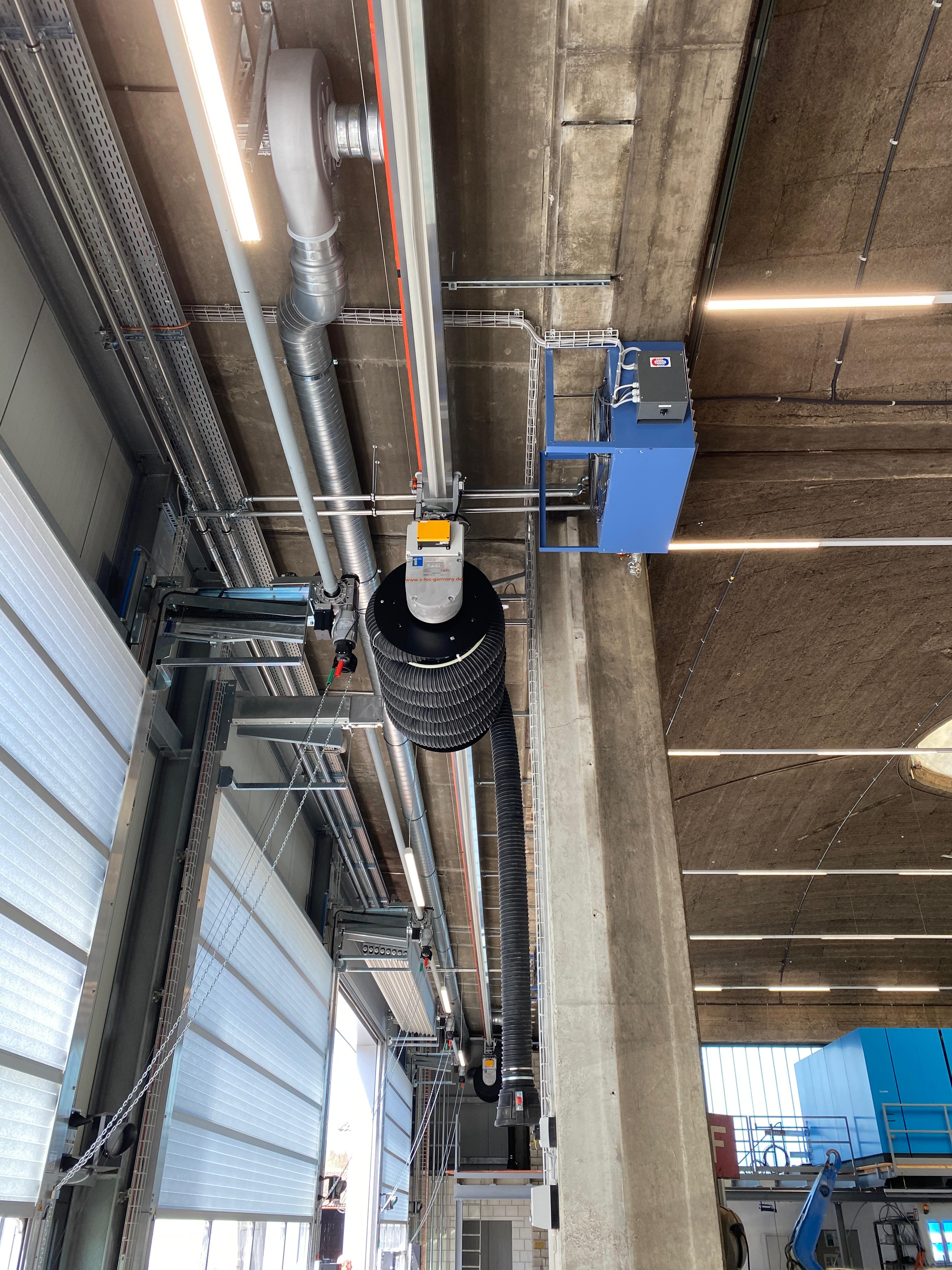 Saugschlitzkanal mit SLS-Trichtern und Schleifstaub-/Schweissrauch-Absaugung