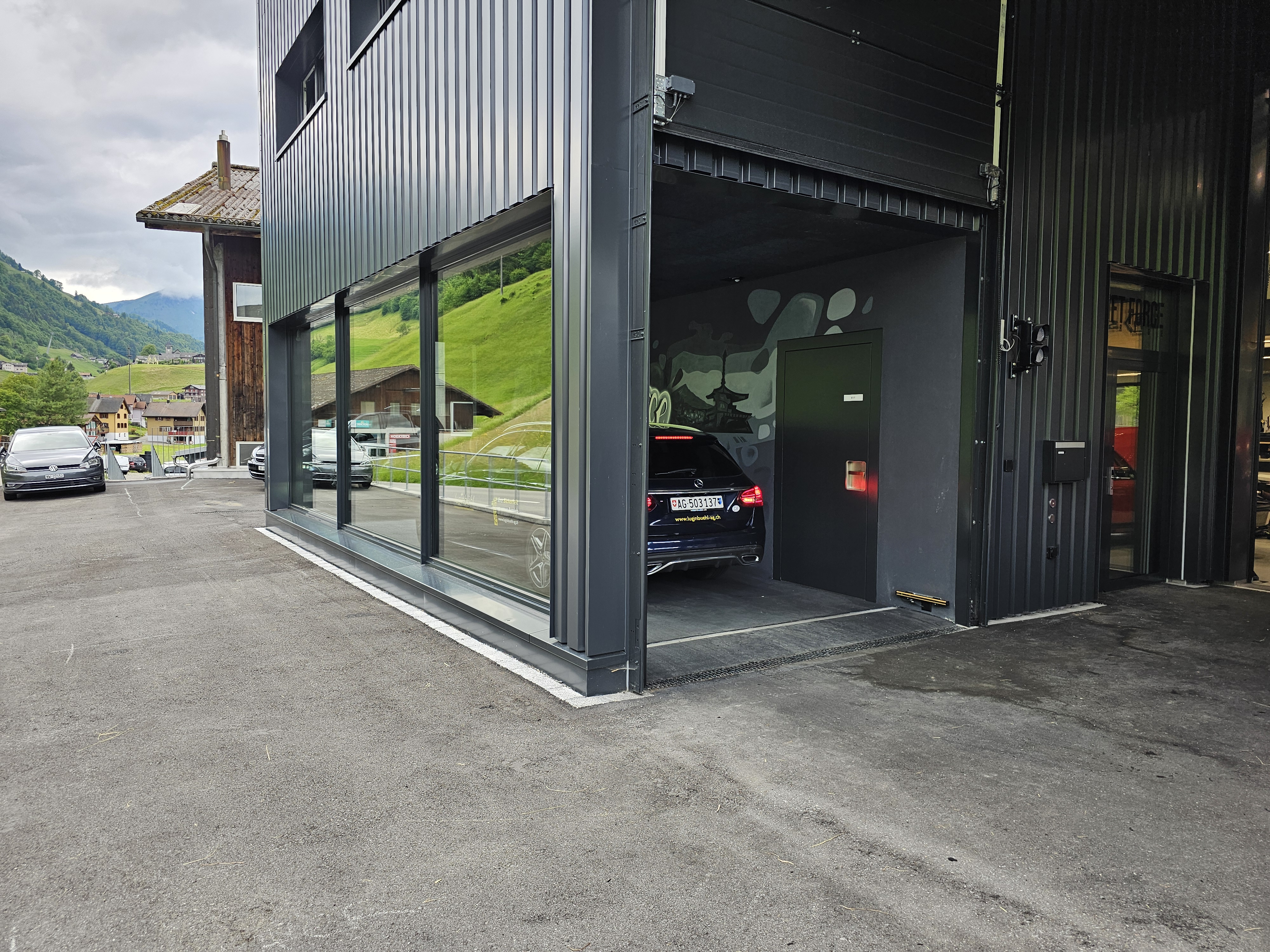 Die Einbaukassette konnte vom alten Lift übernommen werden. Ausgestattet ist die Hebebühne u.a. mit verstellbaren Schiebestücken in Längs- und Querrichtung.