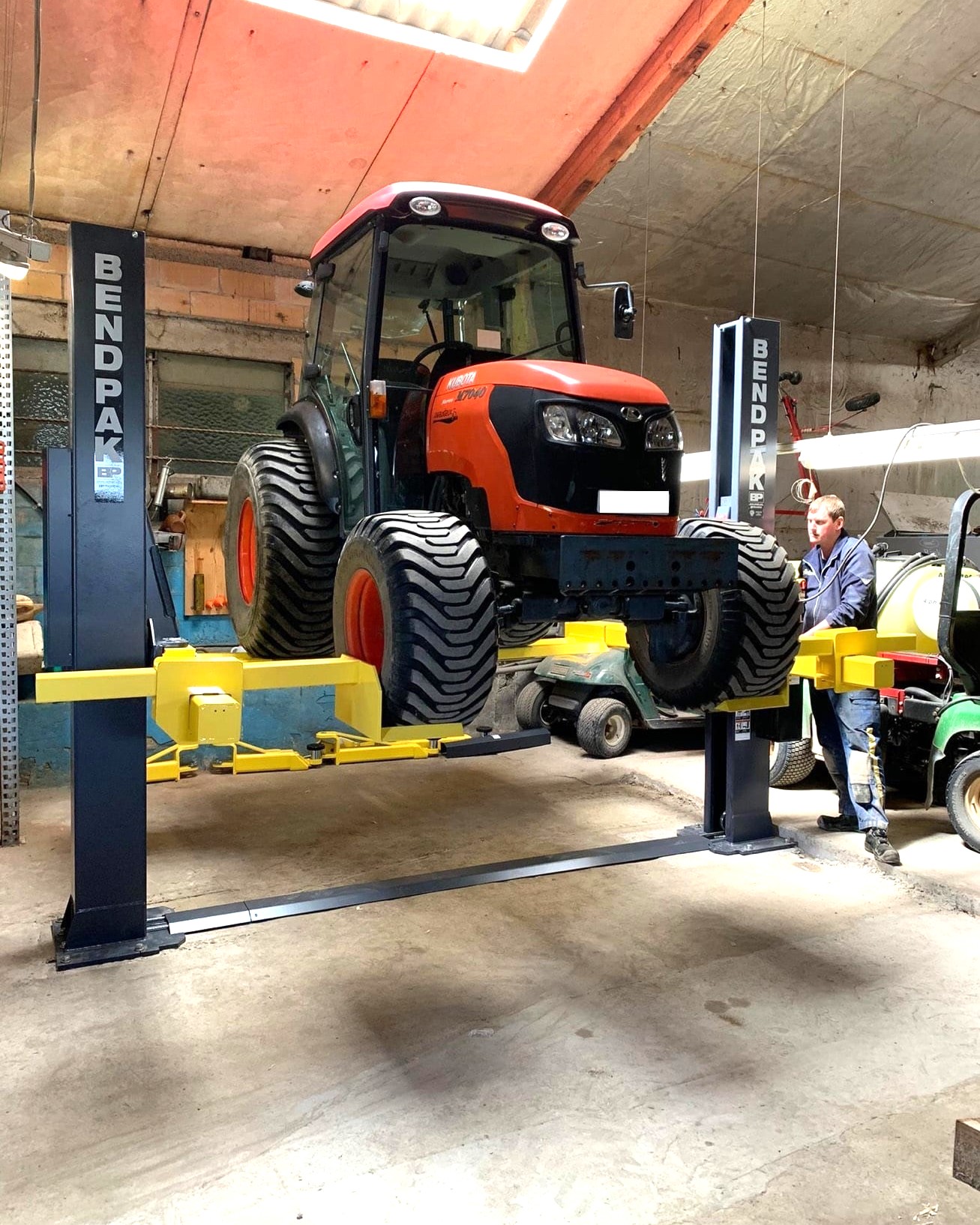 Mit der 2-Säulenbühne BendPak in der Golf Version mit Spezialaufnahmen lassen sich verschiedene Fahrzeuge heben.